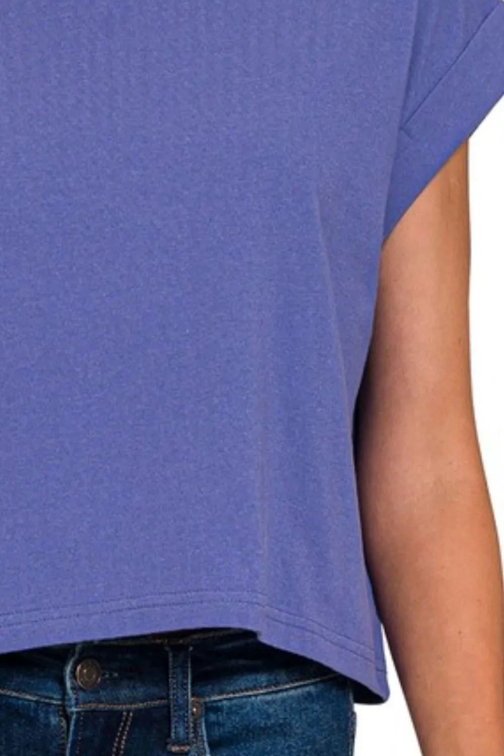 This essential cropped t-shirt features a contemporary design with rolled sleeves and a classic crew neckline. Made from high-quality cotton blend fabric that offers both comfort and durability. The relaxed fit and cropped length make it perfect for casual everyday styling. The versatile purple-blue shade adds a fresh pop of color to any outfit. Ideal for pairing with high-waisted jeans, skirts, or shorts. The breathable material ensures all-day comfort while the simple yet stylish design makes it a wardrobe staple.
