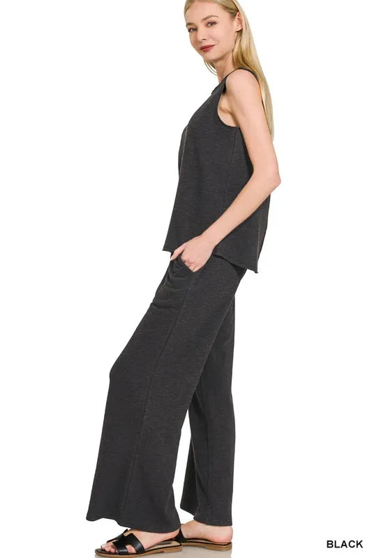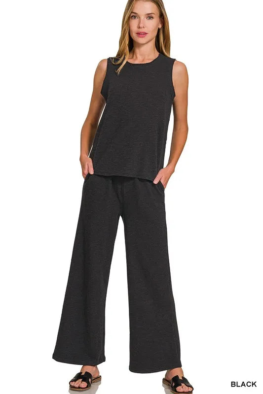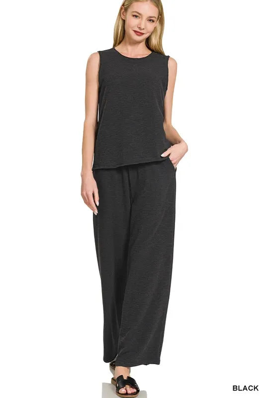 The Cotton Slub Tank & Pants Set is a comfortable and casual outfit option perfect for lounging or running errands. The tank top is made from cotton slub fabric, known for its softness and breathability, making it ideal for warmer weather. The loose and relaxed fit of the tank provides a laid-back look, while the coordinating pants complete the set for a cohesive and effortless outfit. The pants usually feature an elastic waist for added comfort and a relaxed fit. This set is perfect for lazy days at home or casual outings where comfort is key. You can easily pair this set with sneakers or sandals for a relaxed and stylish look.