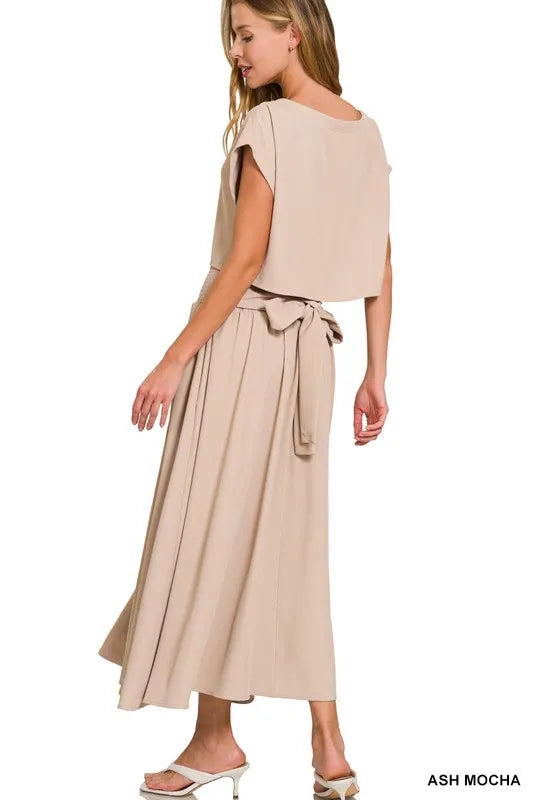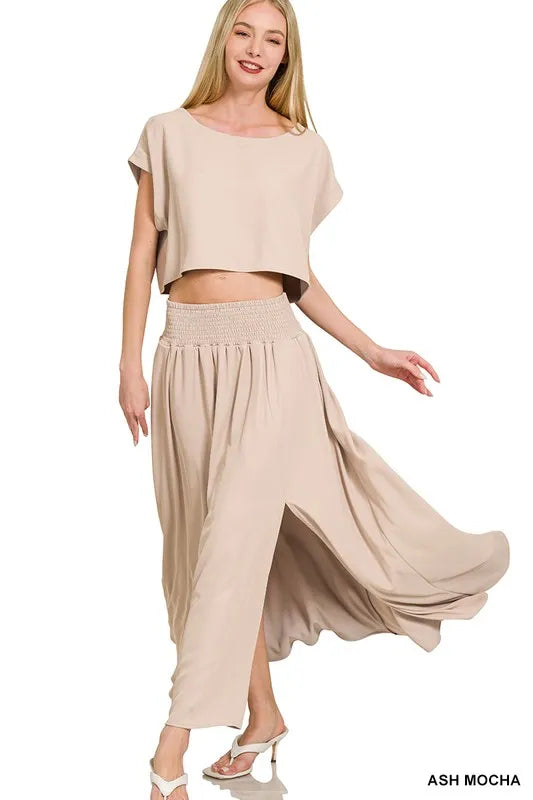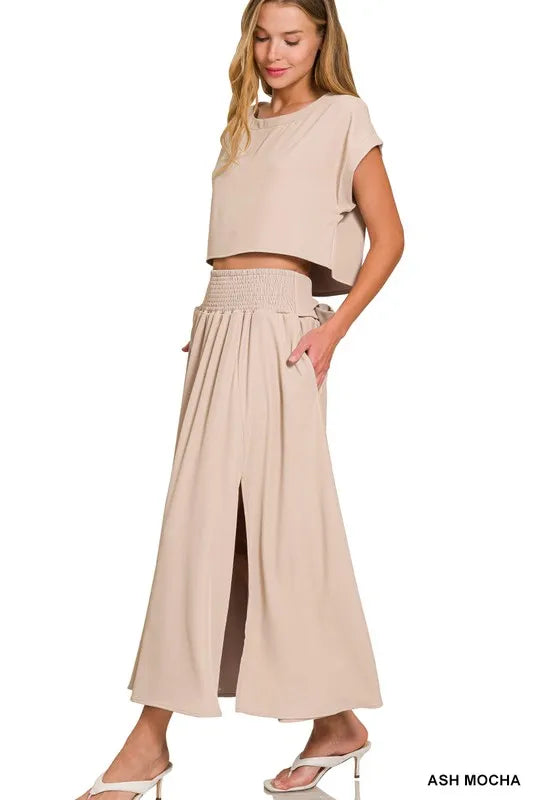 Zenana Heavy Woven Span Crop Tee & Skirt Set